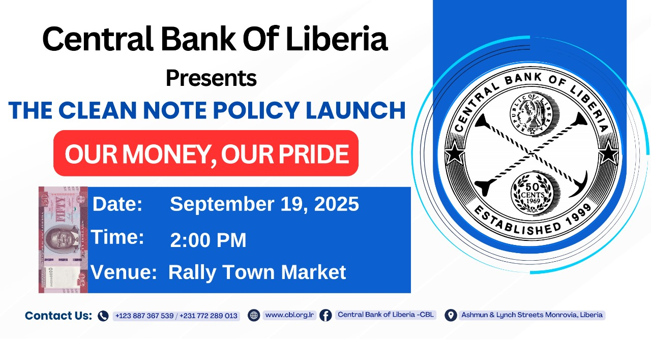 Monrovia, Liberia –The Central Bank of Liberia (CBL) has launched a bold nationwide initiative to safeguard the Liberian dollar through its new “Clean Note Campaign: Our Money, Our Pride.” The campaign officially kicks off on Friday, September 19, 2025, at Rally Time Market in Monrovia and is designed to address the widespread mishandling of Liberian currency.