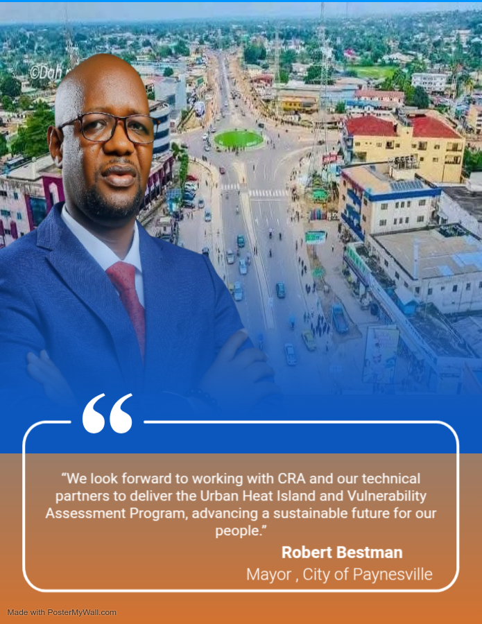 “With CRA’s support, Monrovia will strengthen its capacity to identify heat hotspots, raise public awareness, and integrate heat resilience into city planning and service delivery. This partnership underscores our commitment to safeguard the health and livelihoods of residents.”